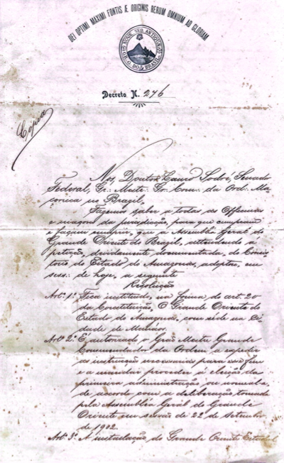 Documentos Históricos · História da Maçonaria Amazonense · História da Maçonaria Brasileira · GOB · GLOMAM1904