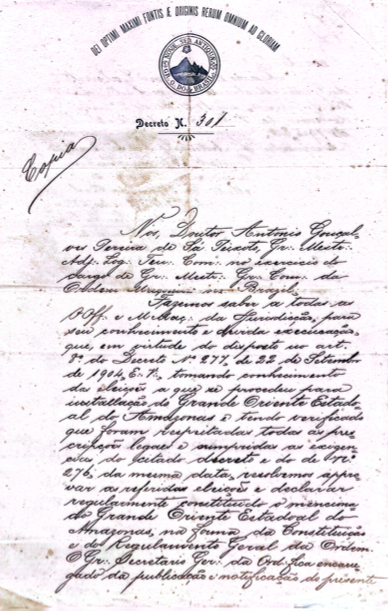 Documentos Históricos · História da Maçonaria Amazonense · História da Maçonaria Brasileira · GOB · GLOMAM1904